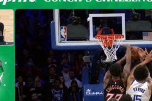 GIF-梅尔顿突破上篮不中篮板球出界给了76人球权