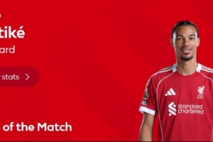 据赛后英超官方消息,利物浦前锋埃基蒂克被评选为此役最佳球员。