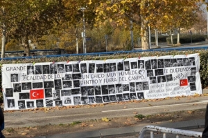 球迷在皇马训练场外悬挂横幅,表达对居莱尔的支持: