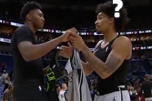 GIF-奎因哈珀交换完球衣前者又把球衣要回去了