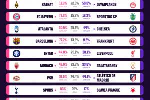 体育资讯12月09日讯 欧冠联赛阶段第6轮将在今夜明晨打响,opta预测国米迎战利物浦有44.8%的获胜概率。此外,主场作战的拜仁和巴萨的获胜概率超过70%