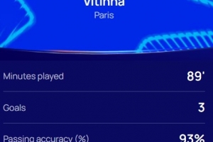 本场比赛维蒂尼亚上演帽子戏法,赛后他也当选欧冠官方评选出的本场比赛最佳球员。
