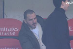 体育资讯12月14日讯 意甲第15轮,米兰vs萨索洛,赛前转播镜头给到前米兰球员博努奇,他今日来到米兰主场观战。