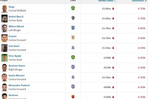 体育资讯12月17日讯 德转更新中超球员身价,古加、布尔克成为中超身价下降最多的球员,两人均下降70万欧。