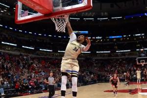 GIF-公牛落后7分已放弃,字母哥一人快攻秀大风车,武切找他说道说道