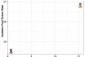 横坐标:带球造犯规率。库里约6%,亚历山大约9%,东契奇约12%