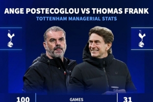 体育资讯1月8日讯 德国转会市场统计了波斯特科格鲁、弗兰克执教热刺的数据,并做出对比。