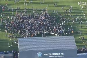 赛后第一时间球迷涌入场内,疯狂庆祝