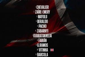 1-舍瓦利耶、2-扎伊尔·埃梅里、3-马尤卢、4-贝拉尔多、5-帕乔、6-扎巴尔尼、7-克瓦拉茨赫利亚、8-法比安·鲁伊斯、9-贡萨洛·拉莫斯、10-维蒂尼亚、11-巴尔科拉
