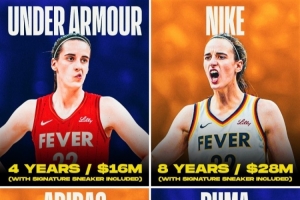 当时Nike提供的是8年2800万美元附带签名鞋条款,UA提供的是4年1600万美元附带签名鞋条款,阿迪提供的是4年600万美元附带签名鞋条款,而彪马得知克拉克要求至少300万美元一年后退出了竞价。