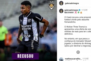 体育资讯1月14日讯 据巴西博主galeraalvinegra报道,武汉三镇求购塞阿拉前锋费尔南迪尼奥遭到拒绝。