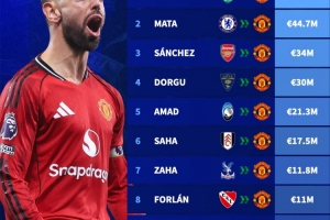 体育资讯1月16日讯 德转列出曼联1月冬窗引进球员花费排行,B费6500万欧第一。