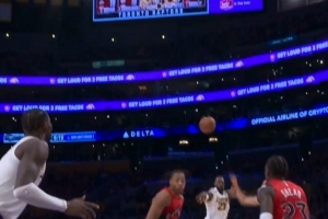 GIF-詹姆斯假投真传助攻艾顿暴扣