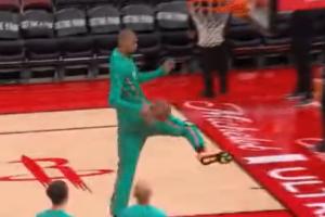 GIF-文班亚马热身扣篮,胯下自抛自扣