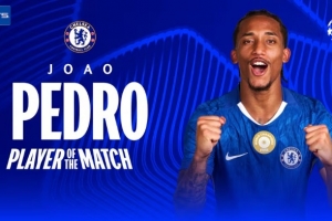 体育资讯1月29日讯 欧冠联赛阶段第8轮,切尔西3-2战胜那不勒斯。若昂·佩德罗首发出战,贡献双响,赛后被评为全场最佳球员。