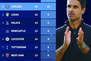 阿尔特塔执教生涯至今胜场榜:对阵狼队、切尔西10胜最多