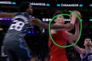 GIF-杨瀚森突破造成两罚!