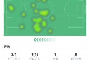 触球34次、传球26次成功率92.3%,传中1次
