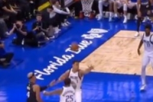 GIF-萨格斯传错被断&球却诡异地弹进篮筐