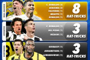 体育资讯03月13日讯 Score90统计了欧冠淘汰赛阶段球队戴帽榜,皇马8次位居榜首。