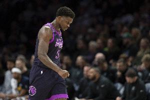 森林狼球星爱德华兹上半场表现不理想,他持球略显犹豫多次被对方包夹,也出现运球失误被断情况,进攻上出手也不多。