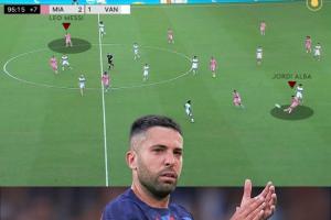 本场比赛是阿尔巴的谢幕战,阿尔巴生涯的最后一脚传球也是传给的梅西↓