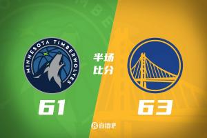 体育资讯12月13日讯 NBA常规赛,勇士半场63-61领先森林狼。
