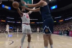 GIF-约基奇发球砸奥科吉胳膊出界