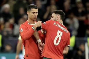 体育资讯12月17日讯 世预赛最后一战,葡萄牙9-1大胜亚美尼亚。本场比赛C罗因停赛缺席。