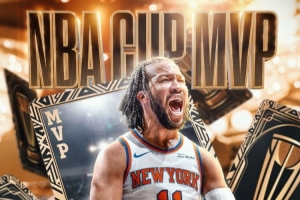 体育资讯12月17日讯 NBA杯决赛,尼克斯124-113战胜马刺,球队核心后卫布伦森喜获NBA杯MVP!