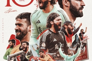 利物浦官方数据统计显示,这也是阿利松在英超联赛的第100场零封里程碑。
