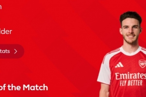 本场比赛赖斯梅开二度,赛后他也当选英超官方评选出的本场最佳球员。