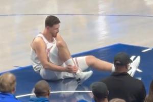 申京踩脚受伤