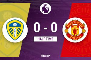 半场-曼联暂0-0利兹联 库尼亚破门被吹 勒温头球中柱 两队仅1射正