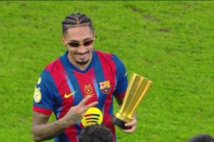 体育资讯1月12日讯 西超杯决赛,拉菲尼亚梅开二度,巴萨3-2击败皇马,夺得冠军,拉菲尼亚赛后接受了媒体的采访。