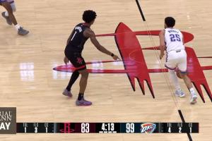 申京失误后雷霆回场违例漏吹,乌度卡向裁判投诉吃T。