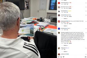 图中穆里尼奥正在看对手通德拉的资料,穆帅配文写道:生活还在继续。