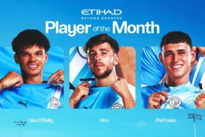 体育资讯12月1日讯 曼城官方公布11月队内最佳候选,奥赖利、尼科·冈萨雷斯、福登三人入围。