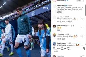 斯通斯社媒晒出比赛照片,庆祝复出,配文:“重返赛场并担任队长感觉真好,晋级下一轮!”