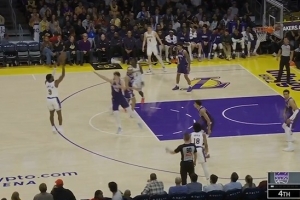 GIF-布朗尼弧顶干拔三分,詹姆斯场下嗨了