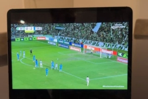 曾效力于桑托斯的罗德里戈也在关注偶像的比赛,他在社交媒体上晒出通过笔记本看内马尔戴帽的视频,配文:“荣耀归于上帝。”