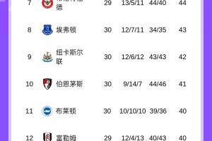 目前的最新积分榜形势如下: