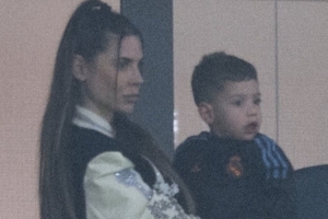 巴尔韦德的妻子米娜社媒晒出现场观赛的照片,调侃配文:“我发现,我丈夫的巅峰状态总是在我怀孕的时候到来。”